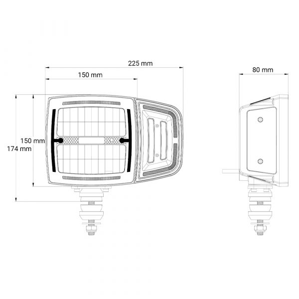 Denna mångsidiga färdstrålkastare/ploglampa erbjuder exceptionell ljusstyrka med 1700 lumen för halvljus och imponerande 3100 lumen för helljus. Lampan ger 1 lux vid 183 meter för halvljus och 365 meter för helljus. Med en automatiskt uppvärmd lins säkerställs optimalt ljusutbyte under alla väderförhållanden. Välj mellan ett E-godkänt vitt positionsljus eller ett orange stylingljus. Färdtrålkastaren kombinerar funktionalitet med modern design, samtidigt som den sprider ett naturligt ljus på 5000 Kelvin. Blinkersenheten kan enkelt monteras på valfri sida av lamphuset. Ett gult linskydd medföljer för användning i svåra väderförhållanden. Lampan är certifierad enligt REF: 27,5, EMC R10, ECE R148 (R7, R6), ECE R149 (R112) och CE.