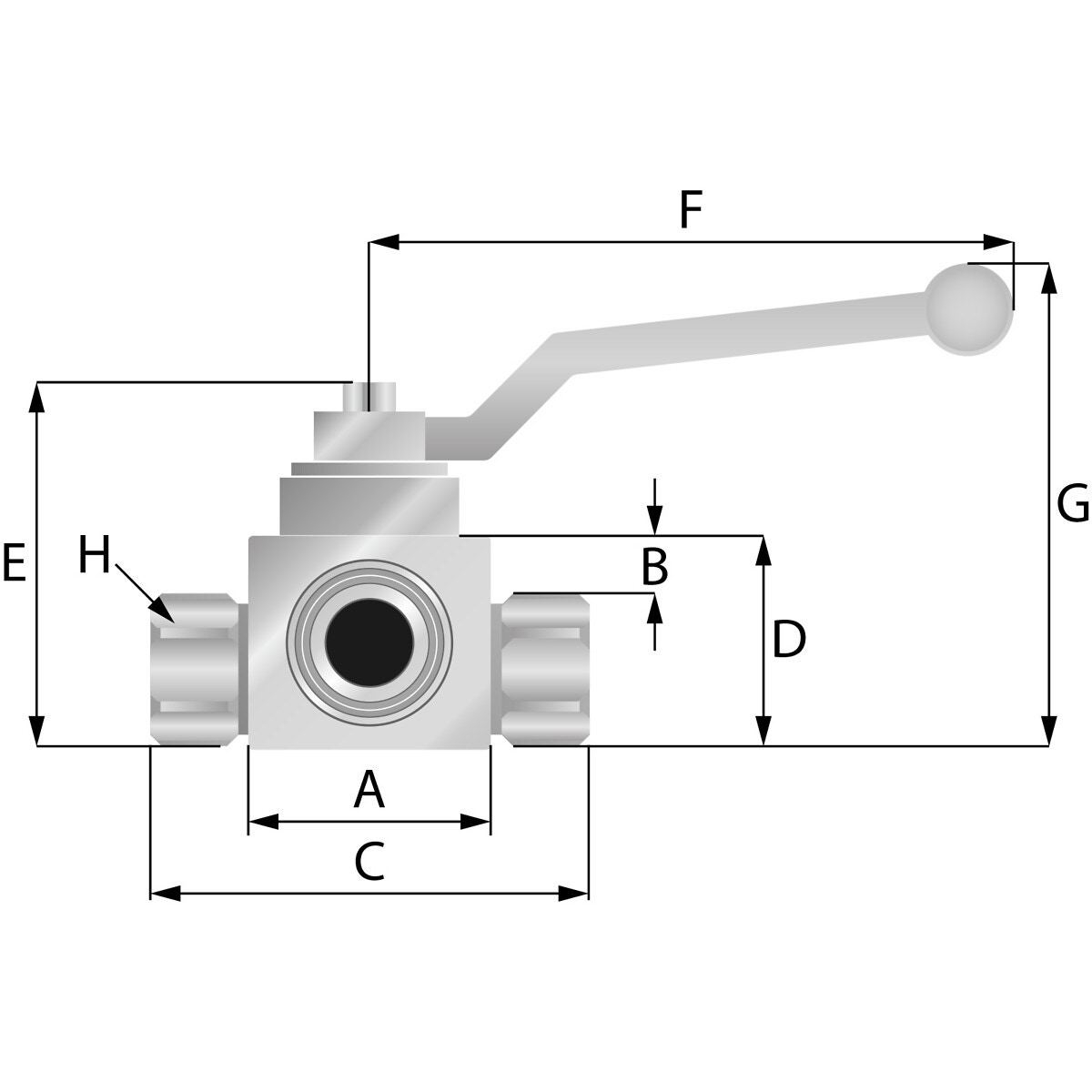 3-VÄGS KULVENTIL BSP 3/8 500BAR L-BORRAD