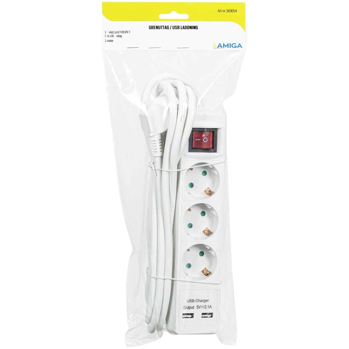 GRENUTTAG 3-VÄGS / USB 3M VIT MED STRÖMBRYTARE