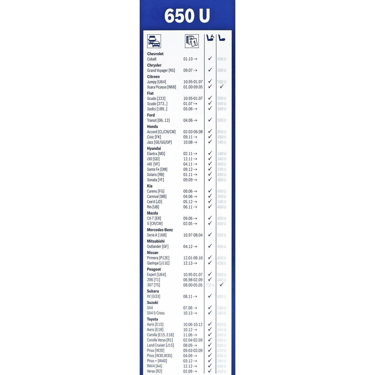 - standard torkarblad 650 mm