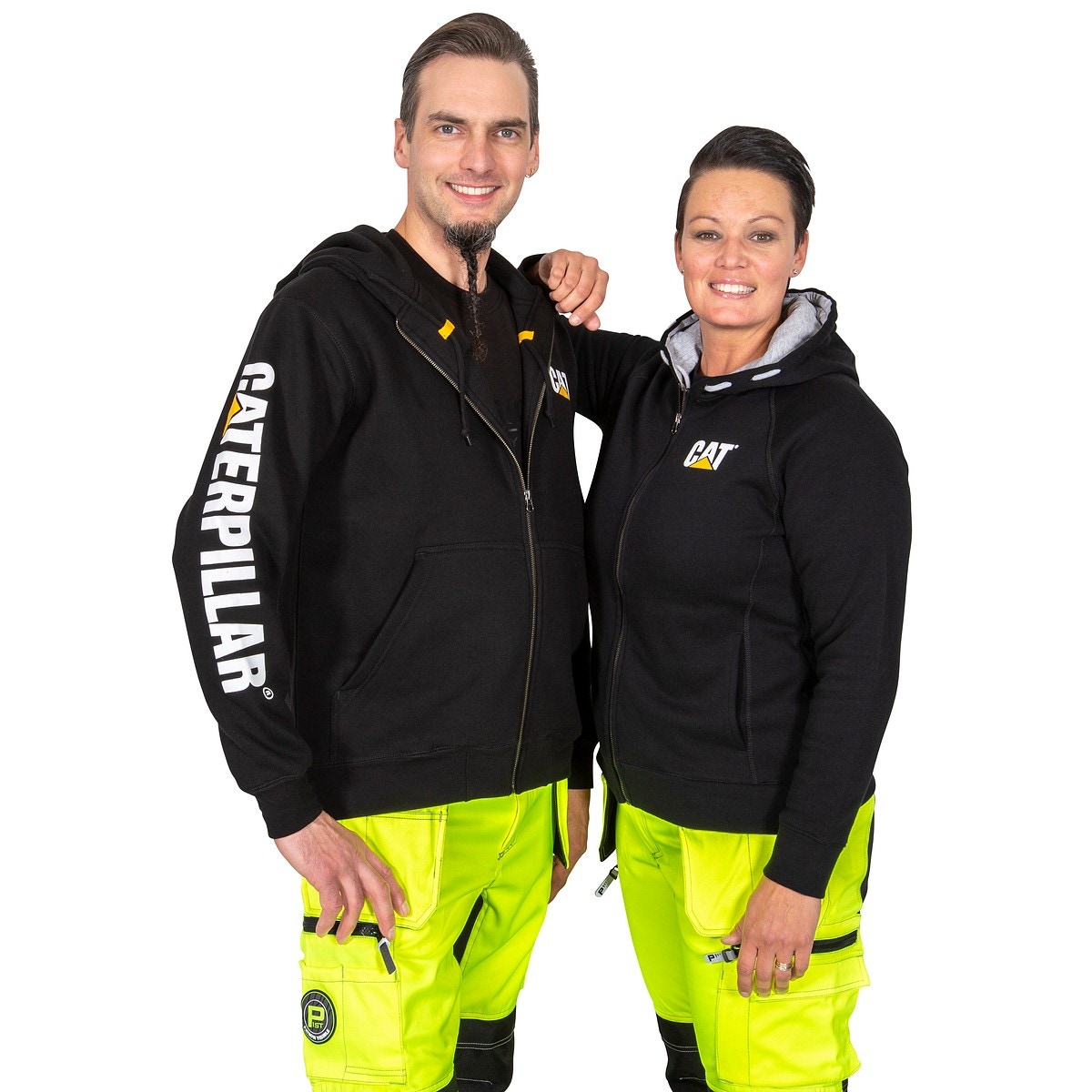 - CAT logo på bröstet och CATERPILLAR tryckning på ärmen