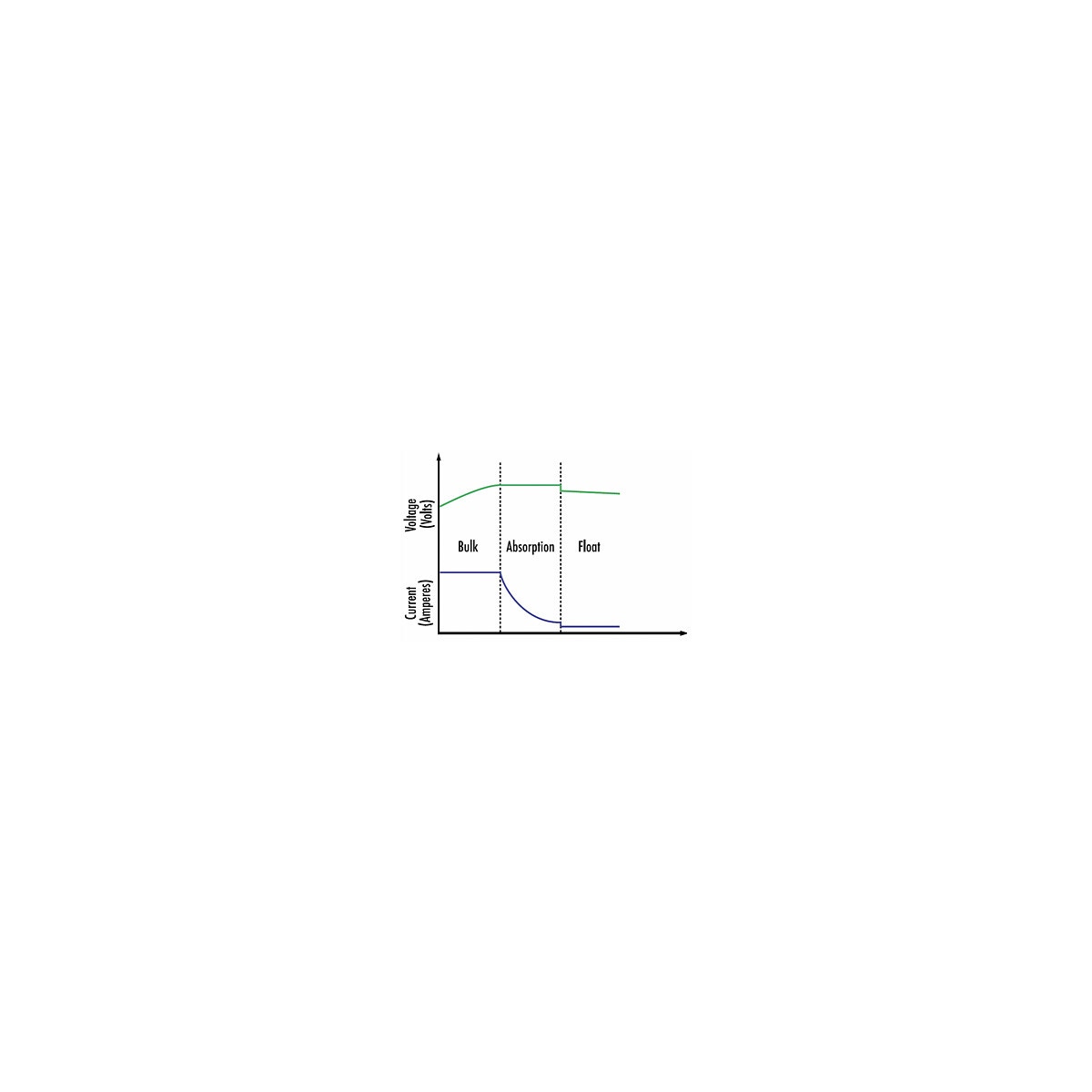 - Absorption: batteriet laddas i stabiliserad spänning tills strömmen uppnår miniminivå.