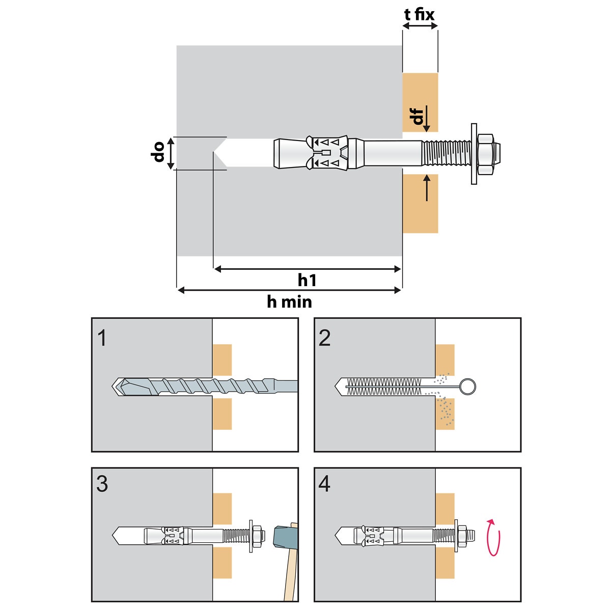 - tjocklek på del som fästs max. (t fix) 5 mm
