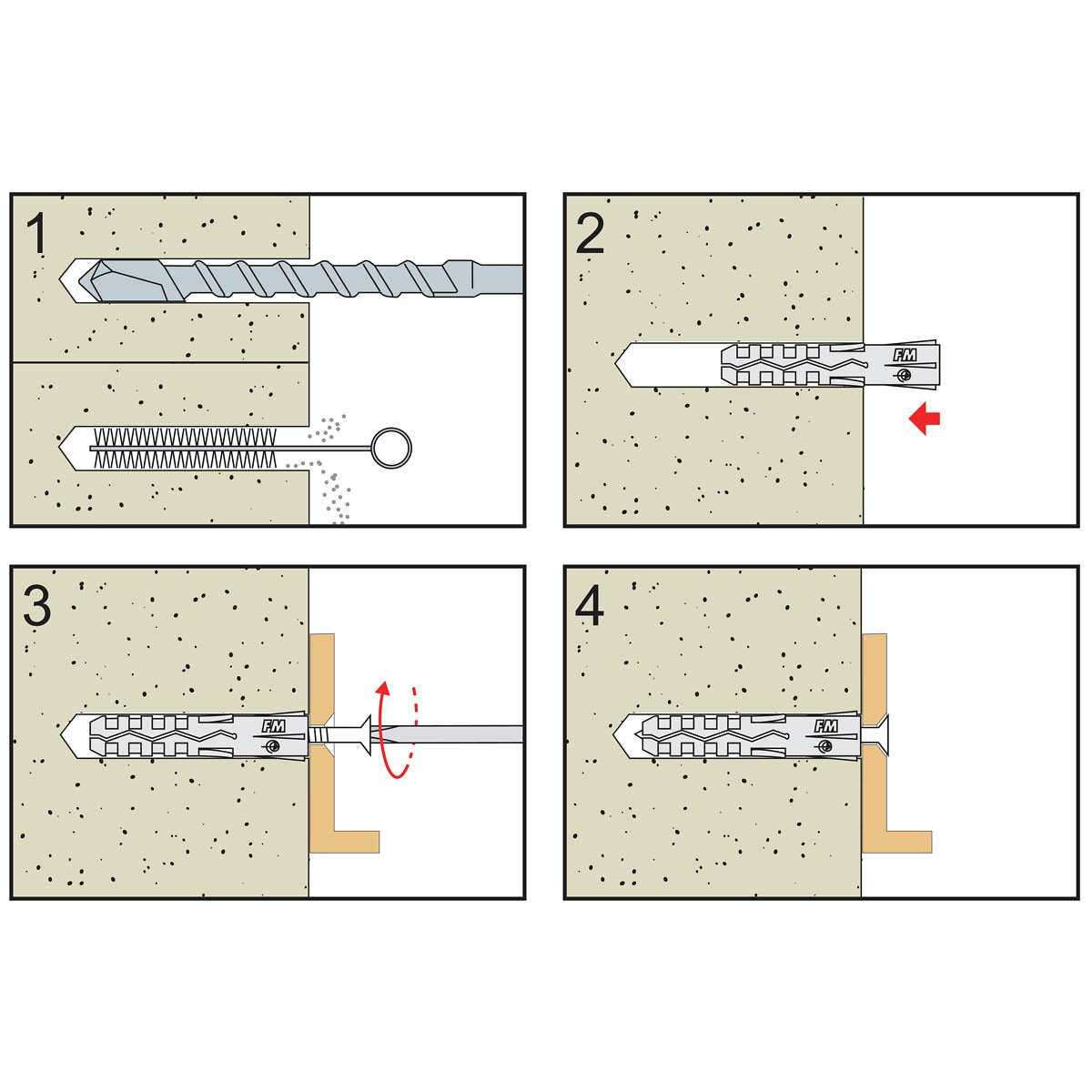 - passar för användning i betong-, fulltegel-, lättbetong- och stenkonstruktioner