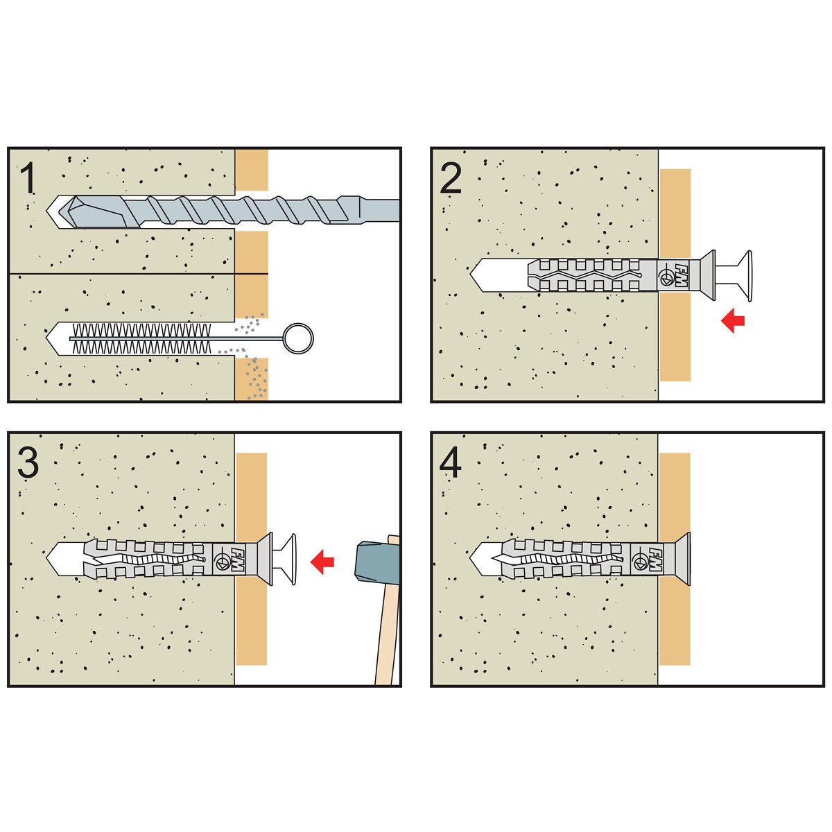 - passar för användning i betong-, fulltegel- och stenkonstruktioner