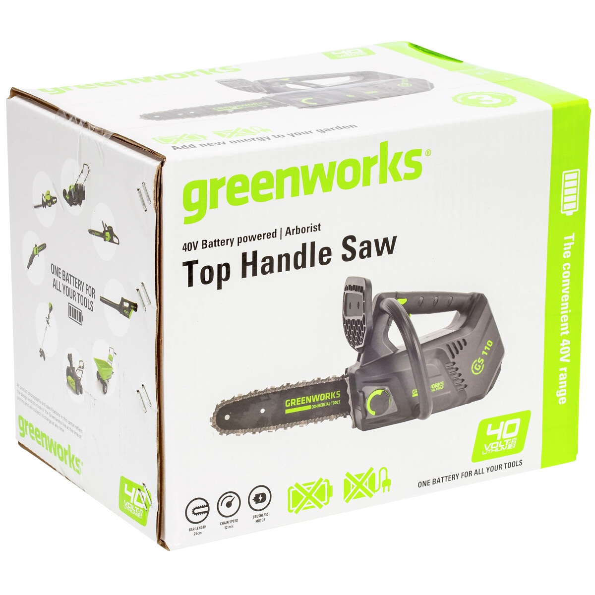 - Det innovativa G-MAX 40V Lithium-Ion-batteriet ger längre driftstid, högre prestanda och mer effekt, med alla GreenWorks G-MAX verktyg