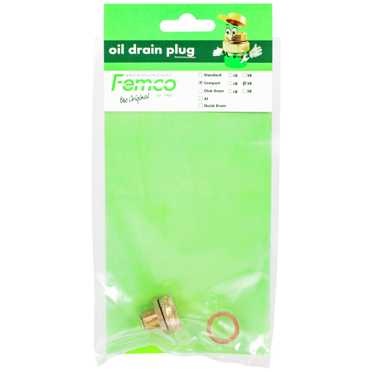 - Femco Compact Drain SB oljeavtappningspluggen för enkel och snabb oljebyte. Utan verktyg och risken för oljeutsläpp