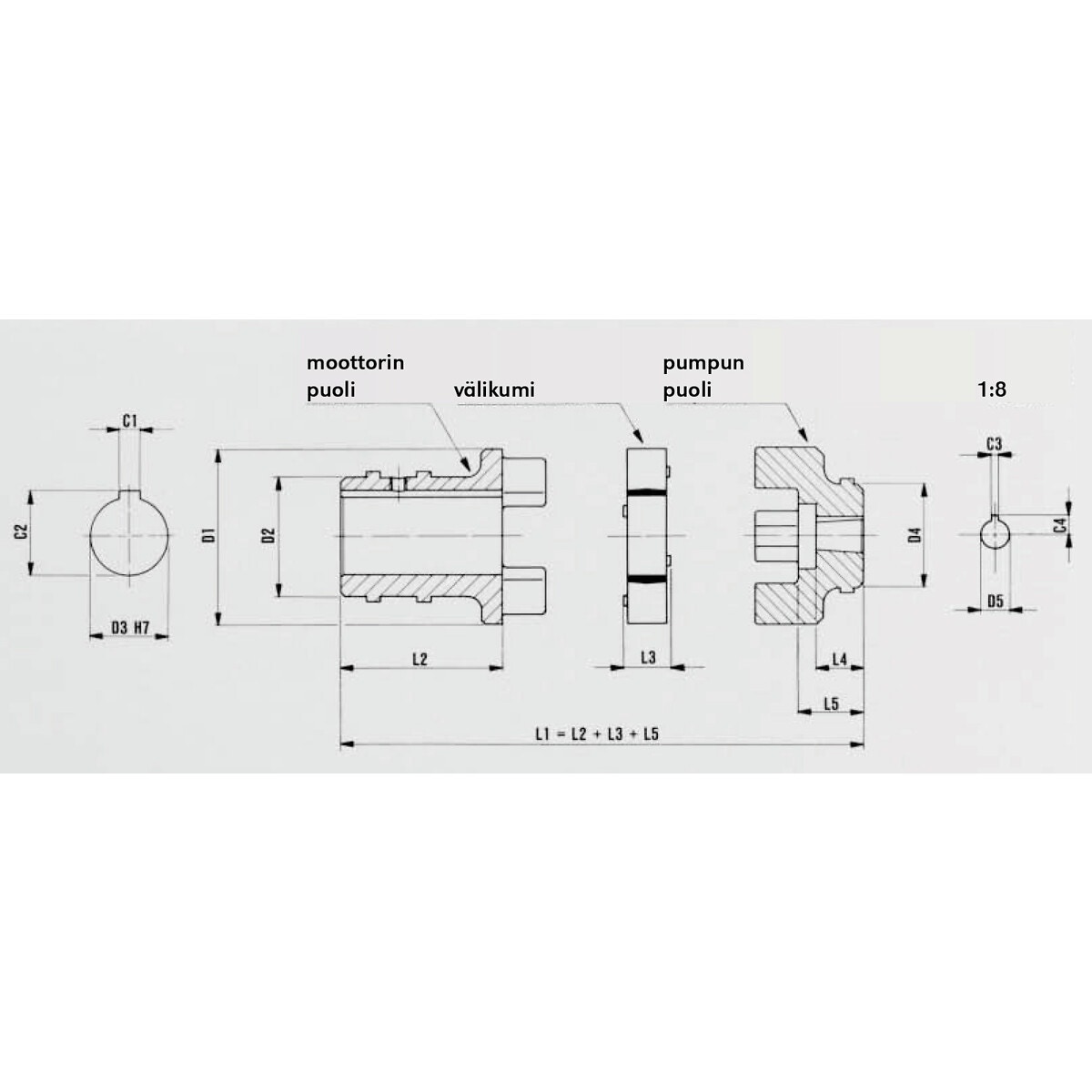 - pump 3-serie, konisk axel 1:8 (euro)