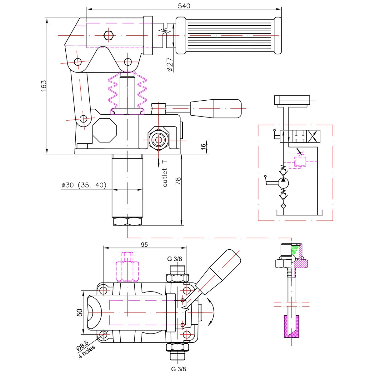 - dubbelverkande handpump för dubbelverkande cylinder