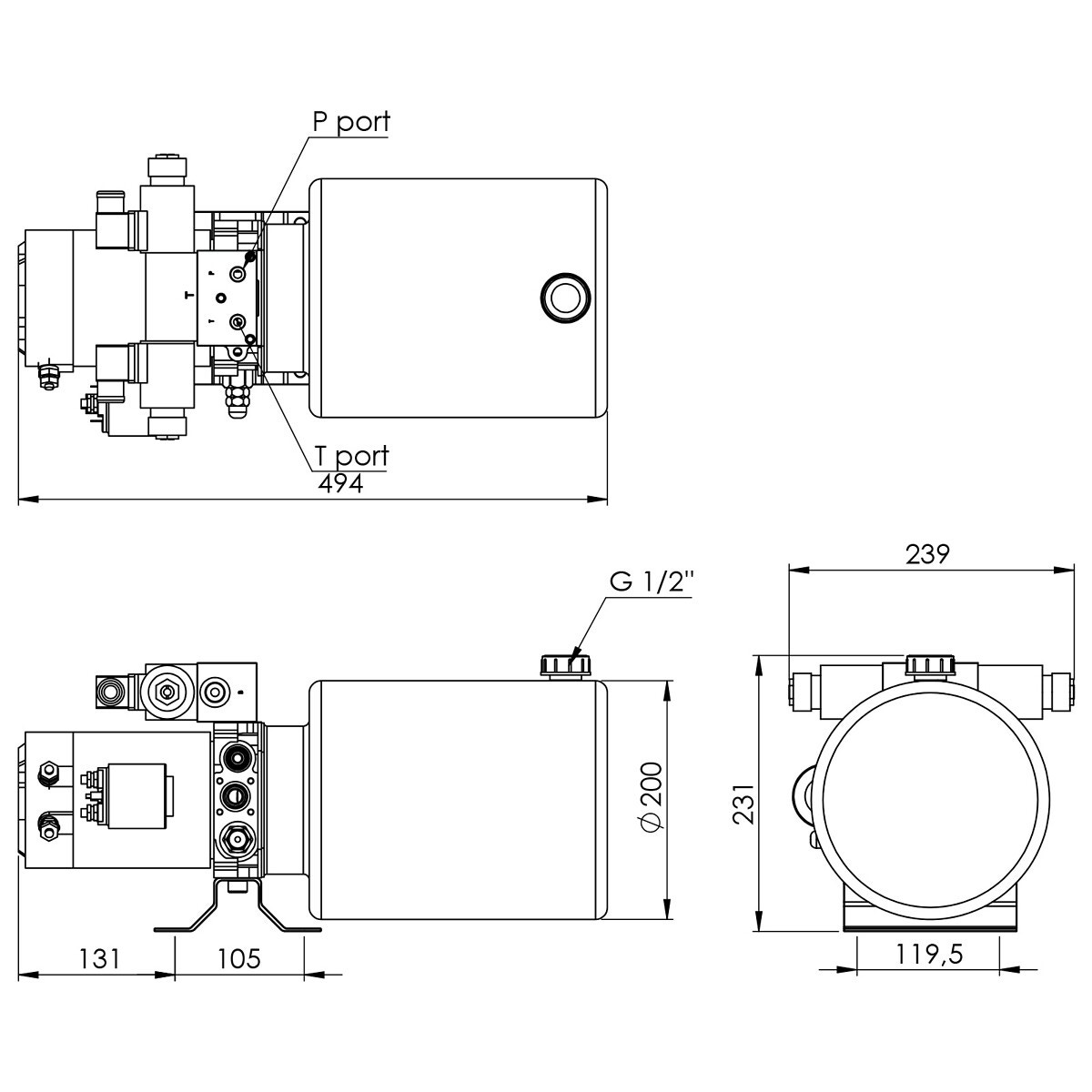 - P,T port G 1/4"