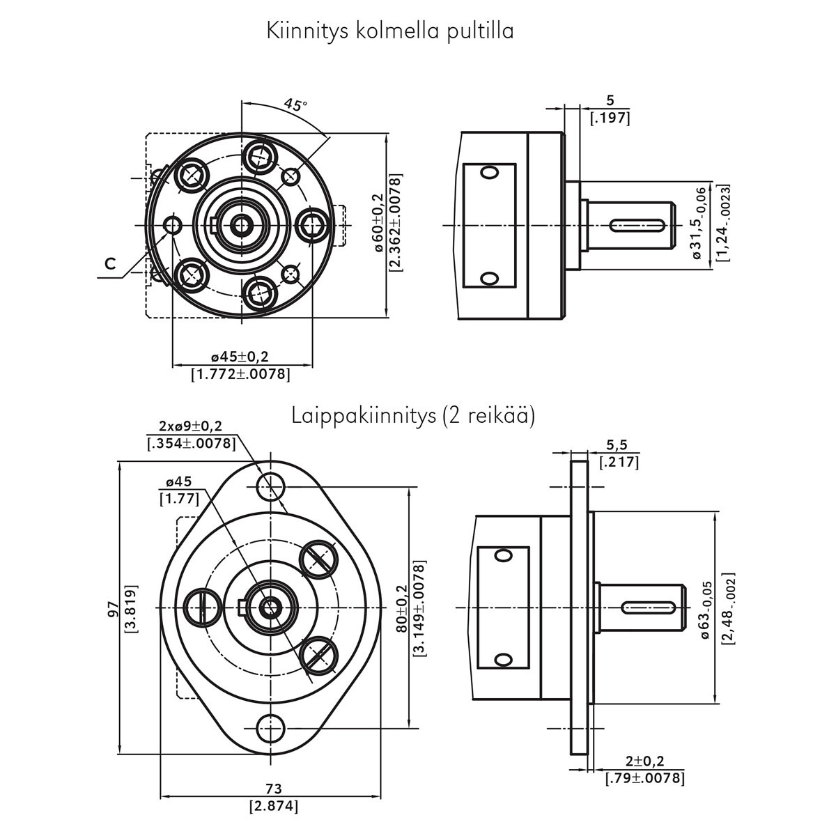 - inkluderar två-bult monteringsfläns