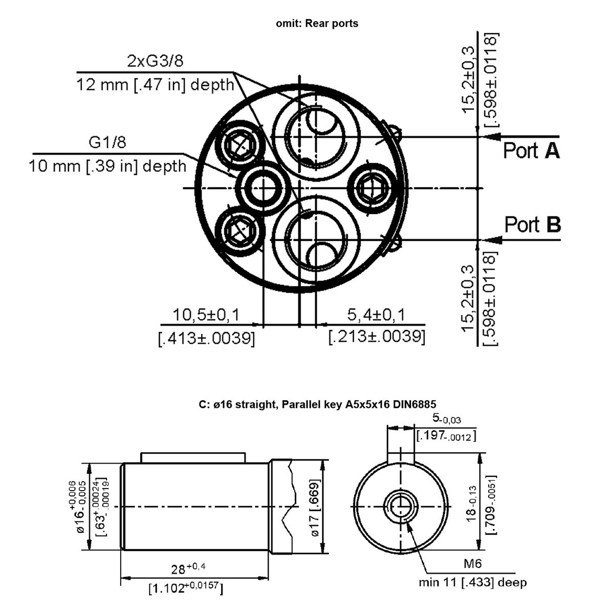 - 16 mm axel med kilspår, kil A5x5x16 DIN6885