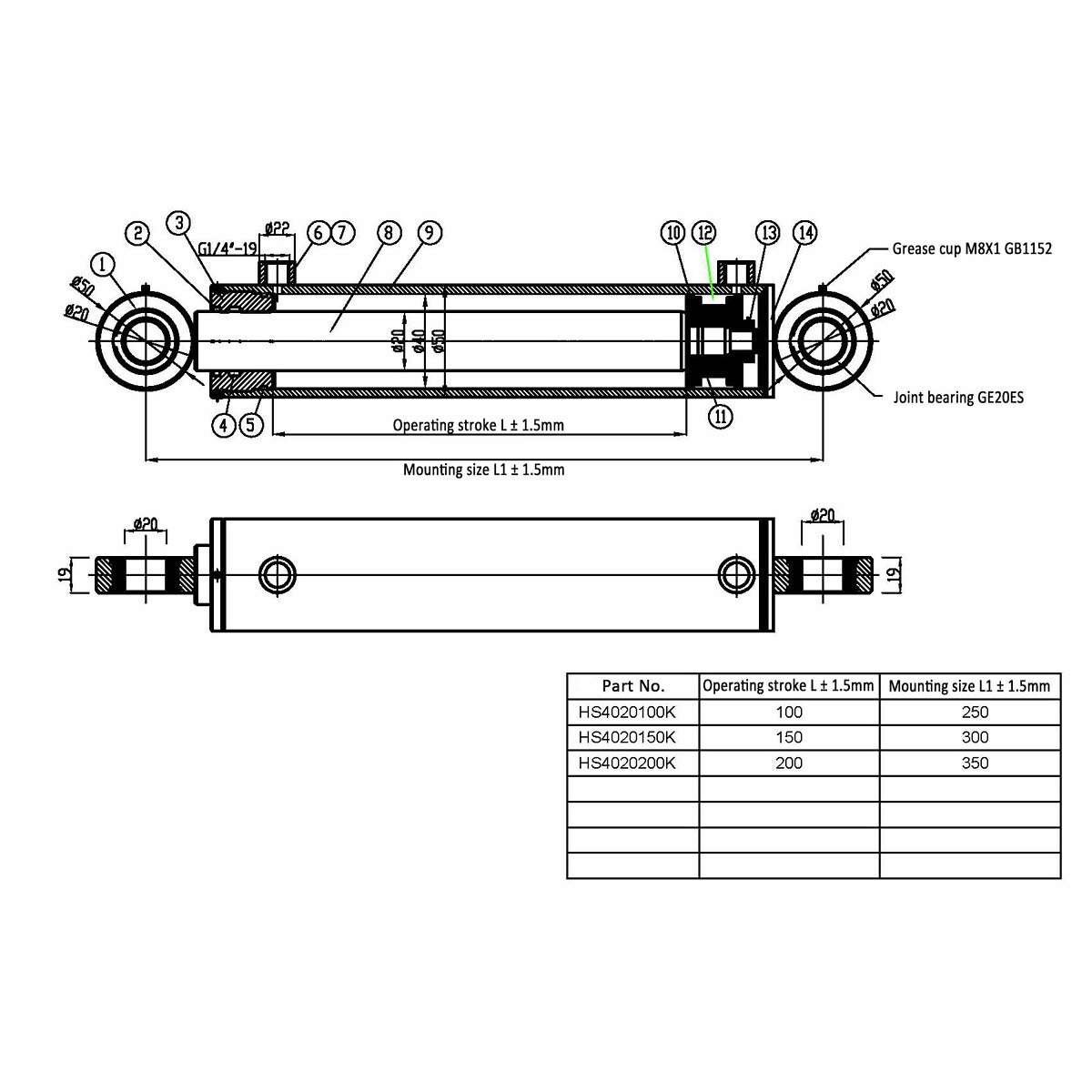 HYDRAULCYLINDER 40X20X200