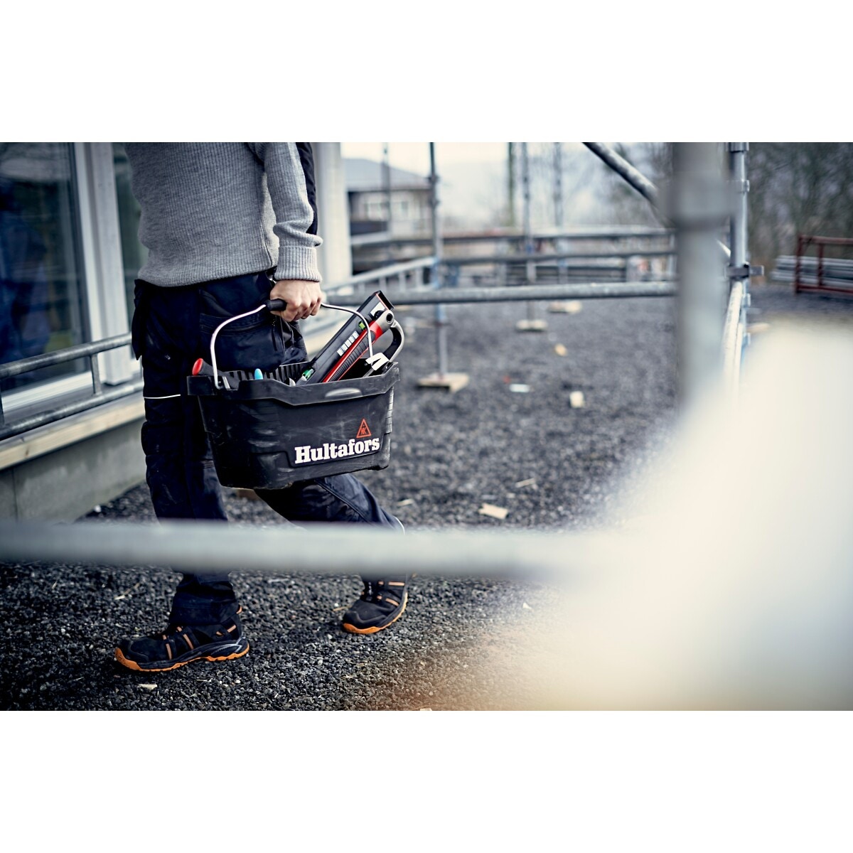 - en ergonomisk hink tillverkad i robust PP-plast för mångsidig användning, som att bära verktyg och förnödenheter i