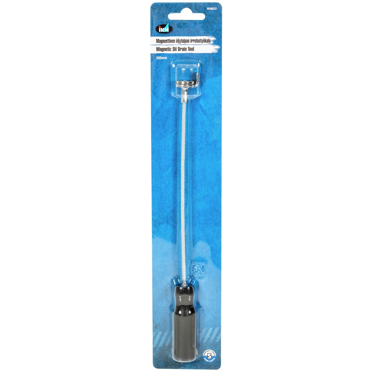 - en stark magnet sitter ordentligt fast vid oljepluggen, vilket gör det enkelt att skruva loss kontakten utan att röra vid den (Obs! oljepluggen måste lossas innan du använder detta verktyg)