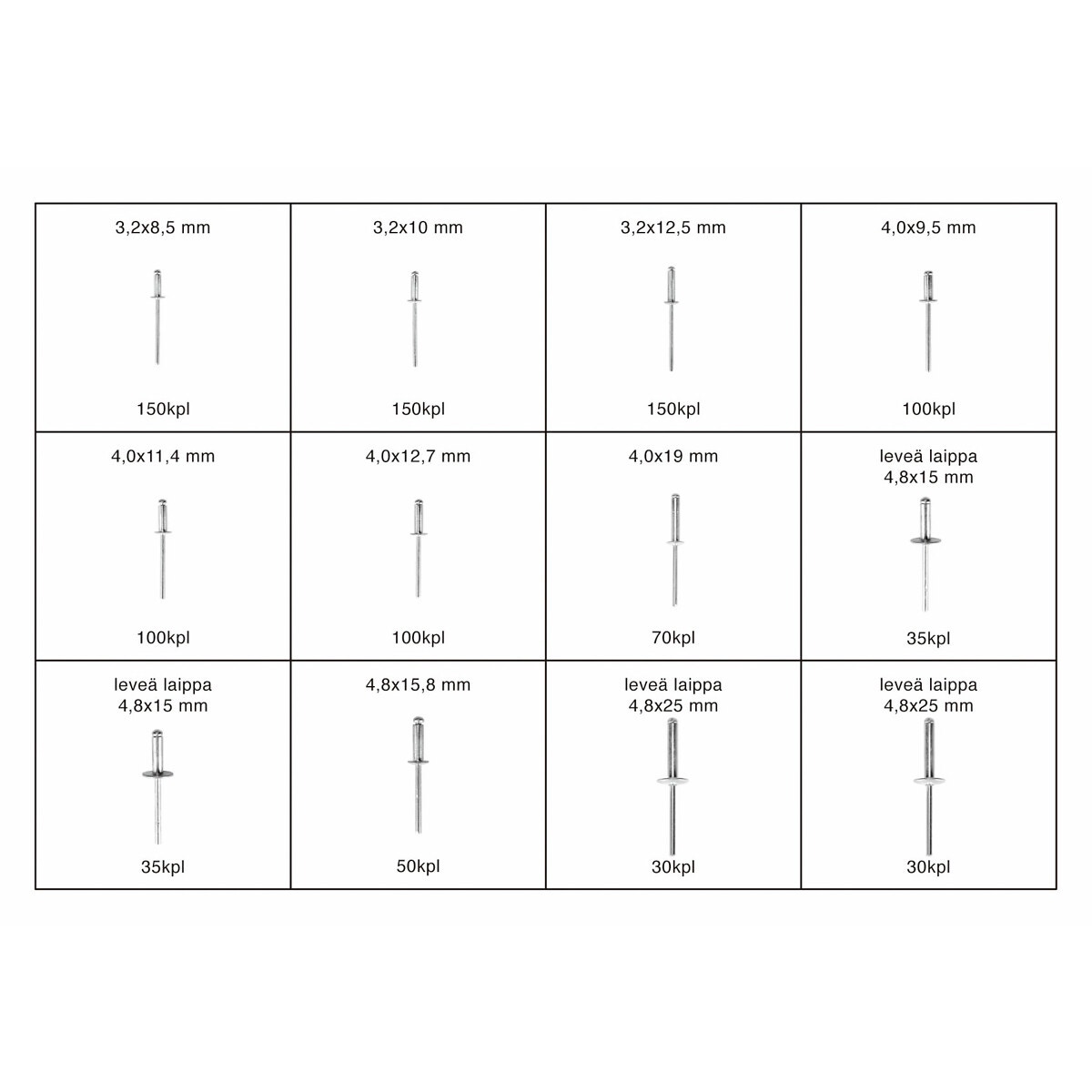 - 150 st 3,2 x 12,5 mm