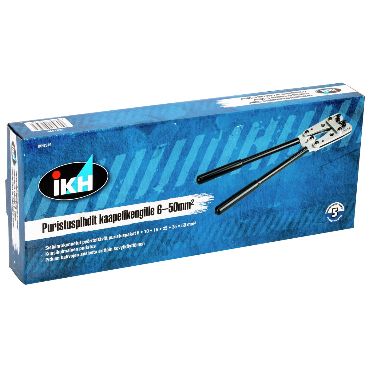 - rörkabelskotång med inbyggt roterande backar för 6 - 10 - 16 - 25 - 35 - 50 mm² rörkabelskor