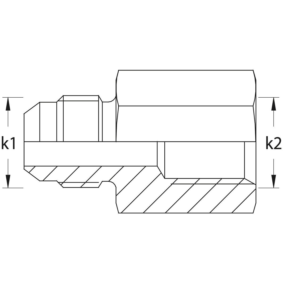 - UNF utvändig gänga JIC 37° - BSP fast invändig gänga