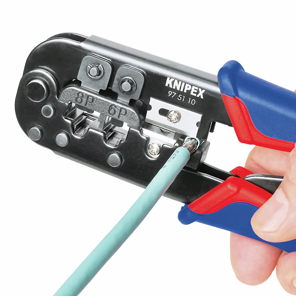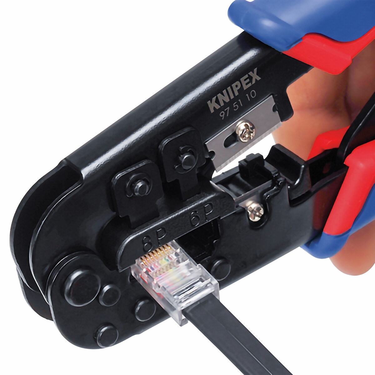 - för krympning av 6- och 8-stifts Western-pluggar, typ RJ 11/12 (9,65 mm bred) och typ RJ 45 (11,68 mm bred)