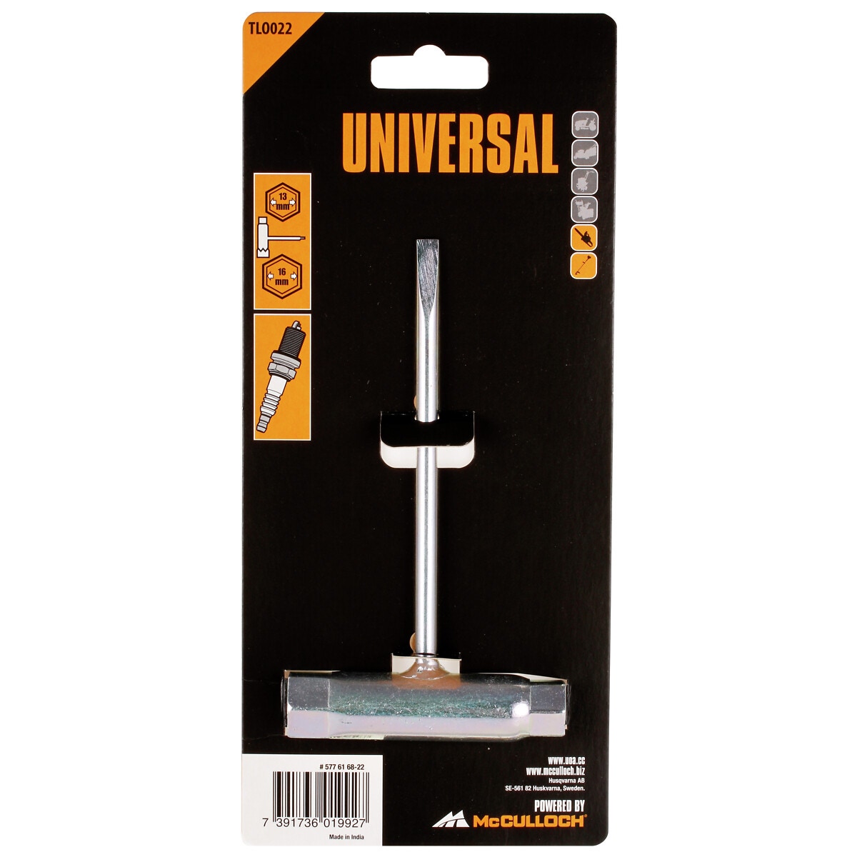 - passar vid byte av tändstift på motorsåg samt vid justering av kedjespänning men kan även användas vid underhåll av trimmers och traktorer