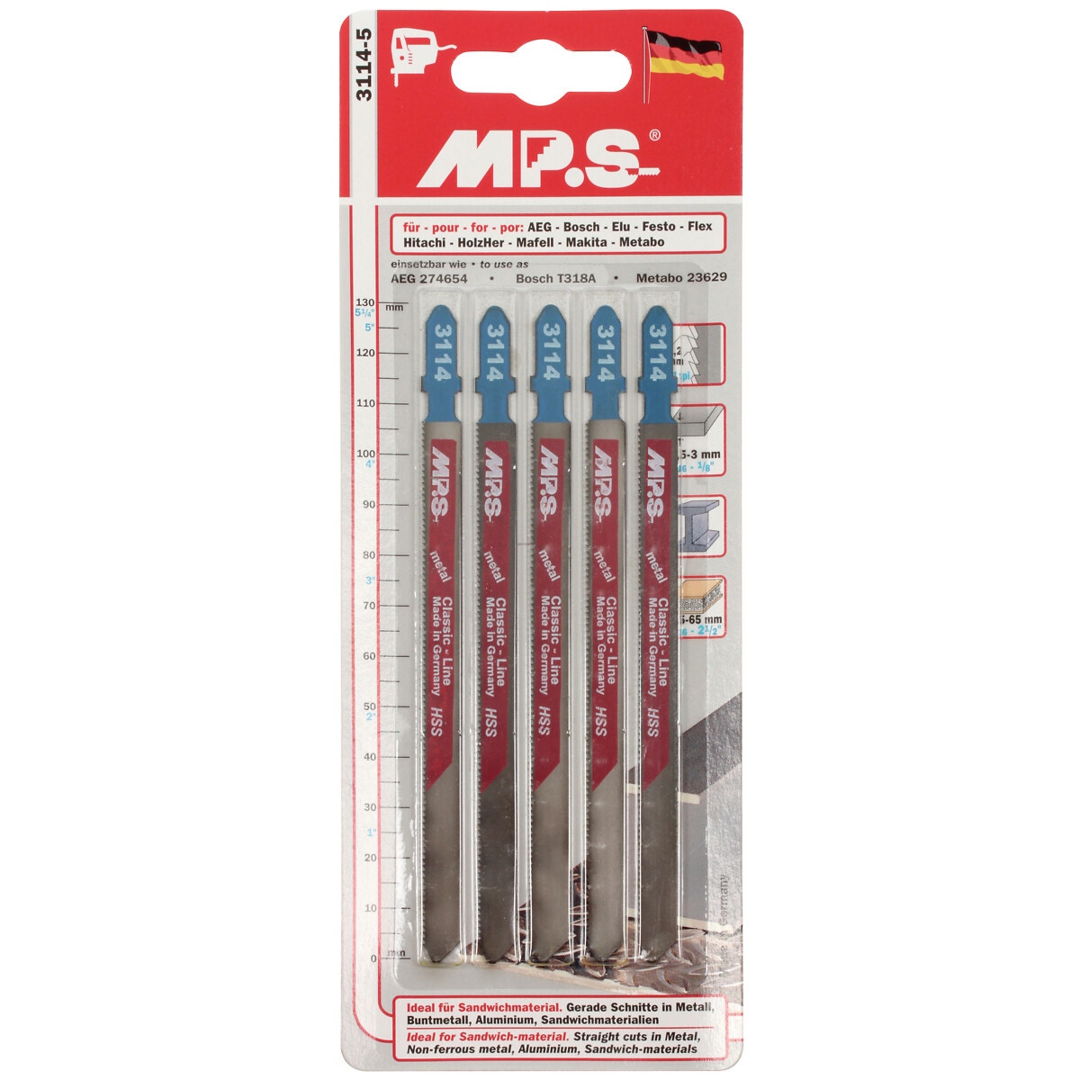 STICKSÅGSBLAD 110MM HSS 21TPI 3114 METALL 5ST