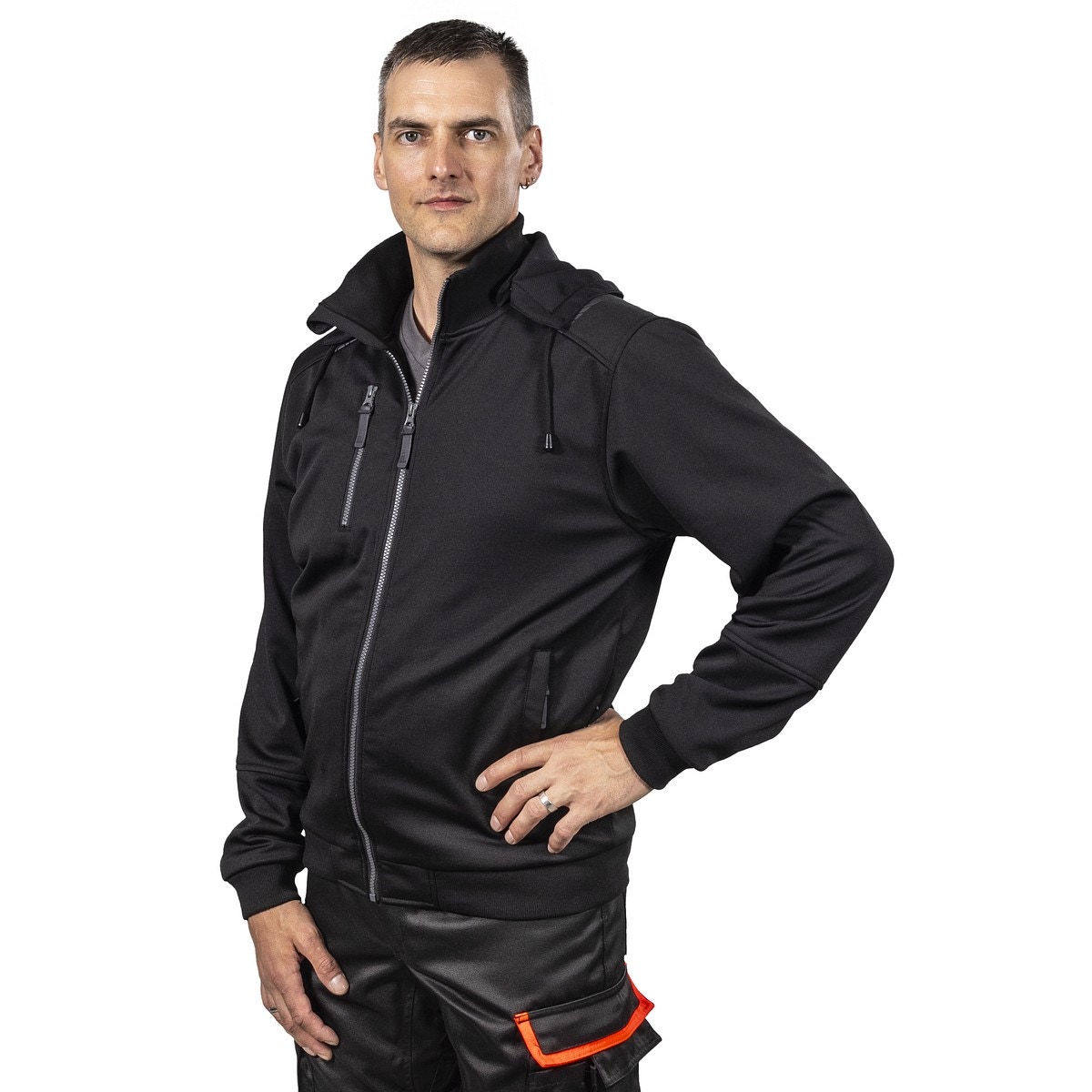 - bröstficka med blixtlås, D-ring inuti