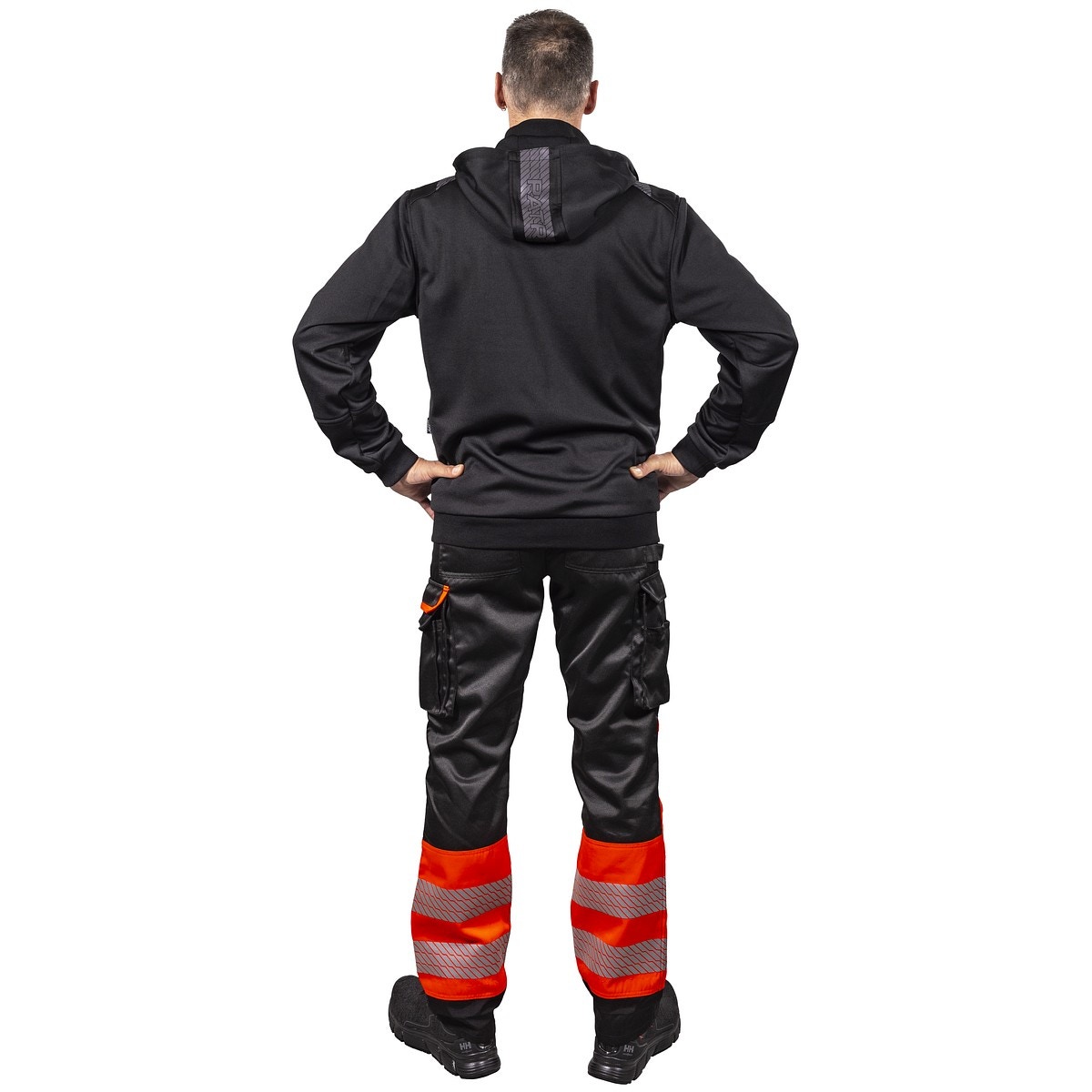 - mörka tryckta, segmenterade reflexer på axlar och huva