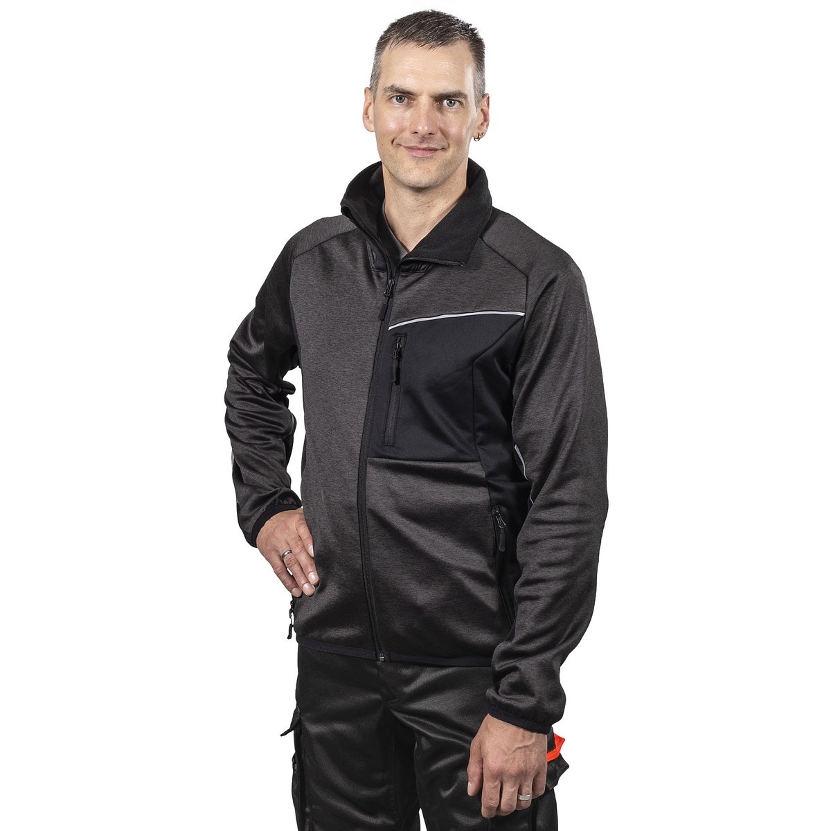 FLEECE JACKA STRETCH S CAYDEN M.GRÅ/SVART