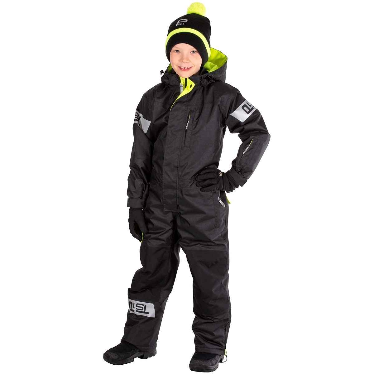 VINTEROVERALL BARN 140 ARTHUR SVART/FL.GUL