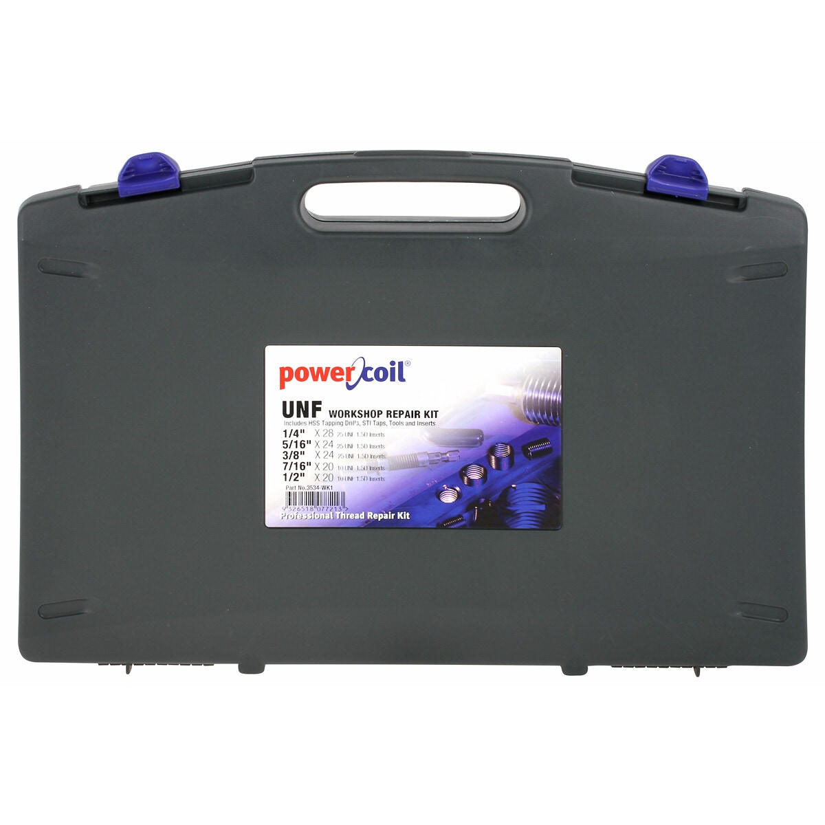 - 95 x gänginsats: UNF 1/4 -28 (25 st) - UNF 5/16 -24 (25 st) - UNF 3/8 -24 (25 st) - UNF 7/16 -20 (10 st) - UNF 1/2 -20 (10 st)