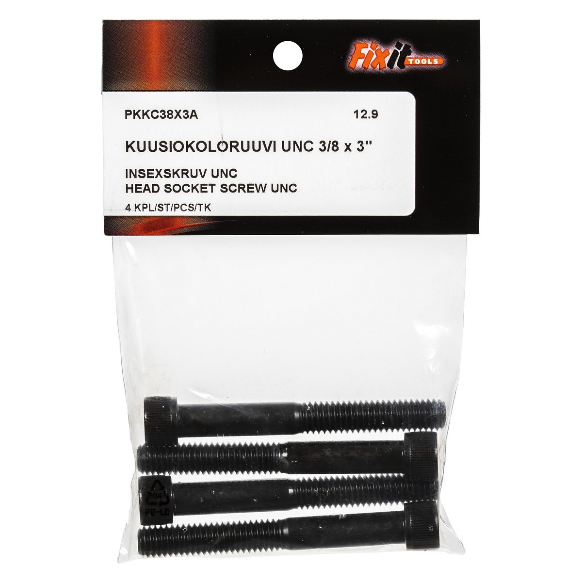 INSEXSKRUV UNC 3/8 X 3" 4ST 12.9