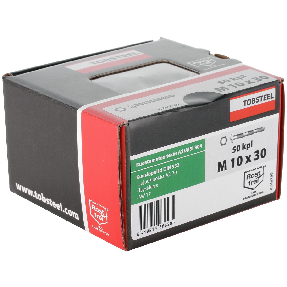 BULT M10X30 RF A2-70 DIN933 50ST SEXKANTS