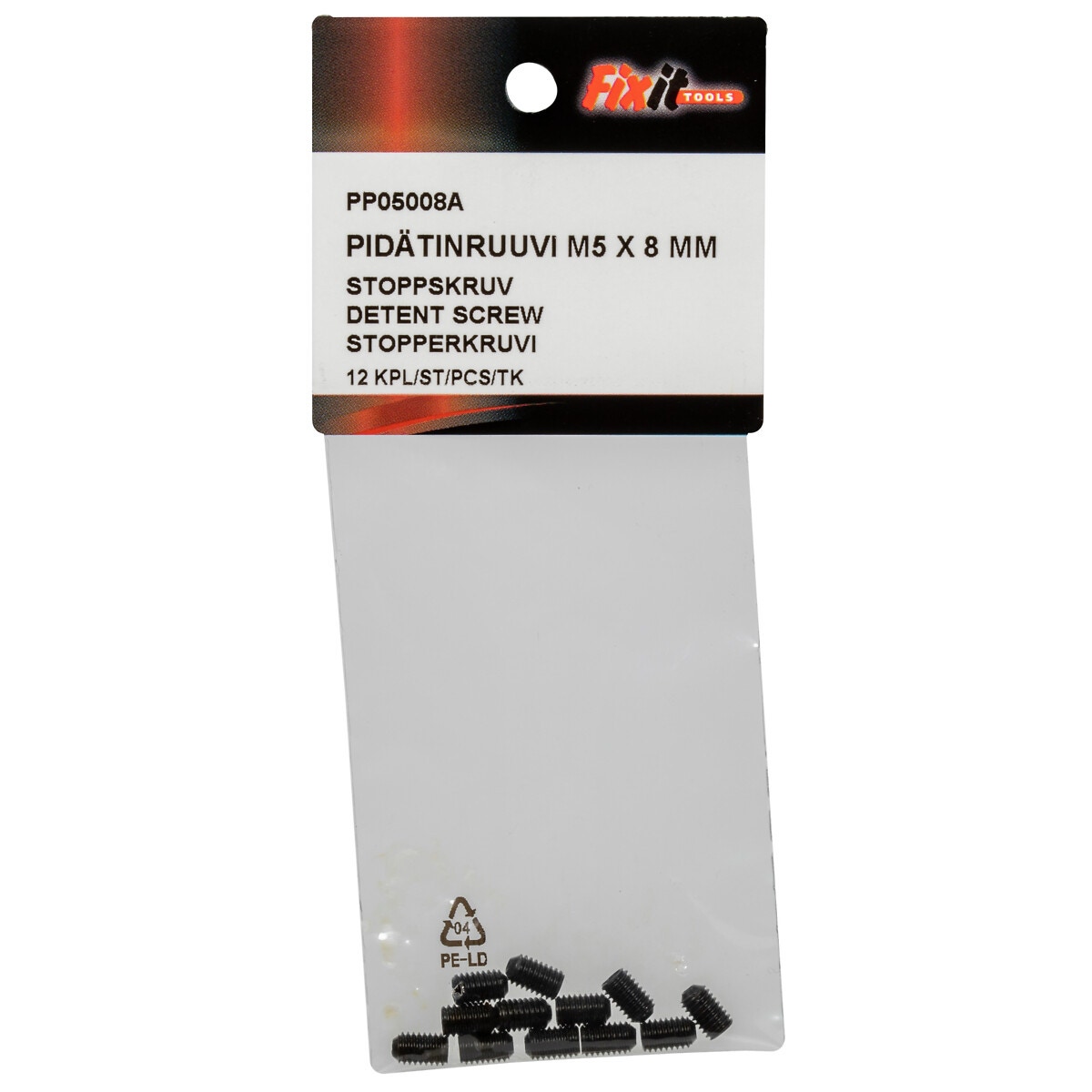 STOPPSKRUV M5X8 DIN916 12ST 45H OBELAGD