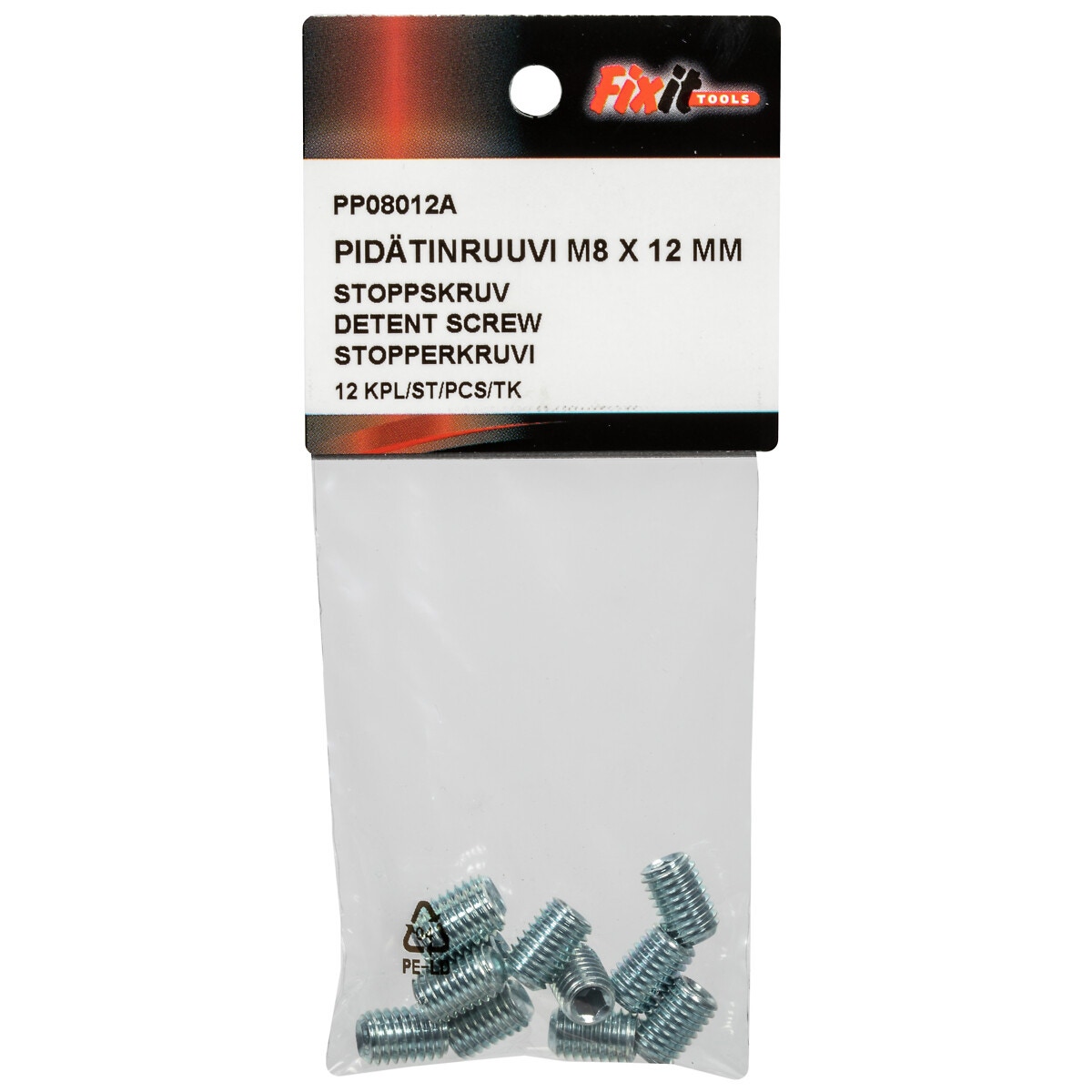 STOPPSKRUV M8X12 DIN916 12ST 45H FÖRZINKAD