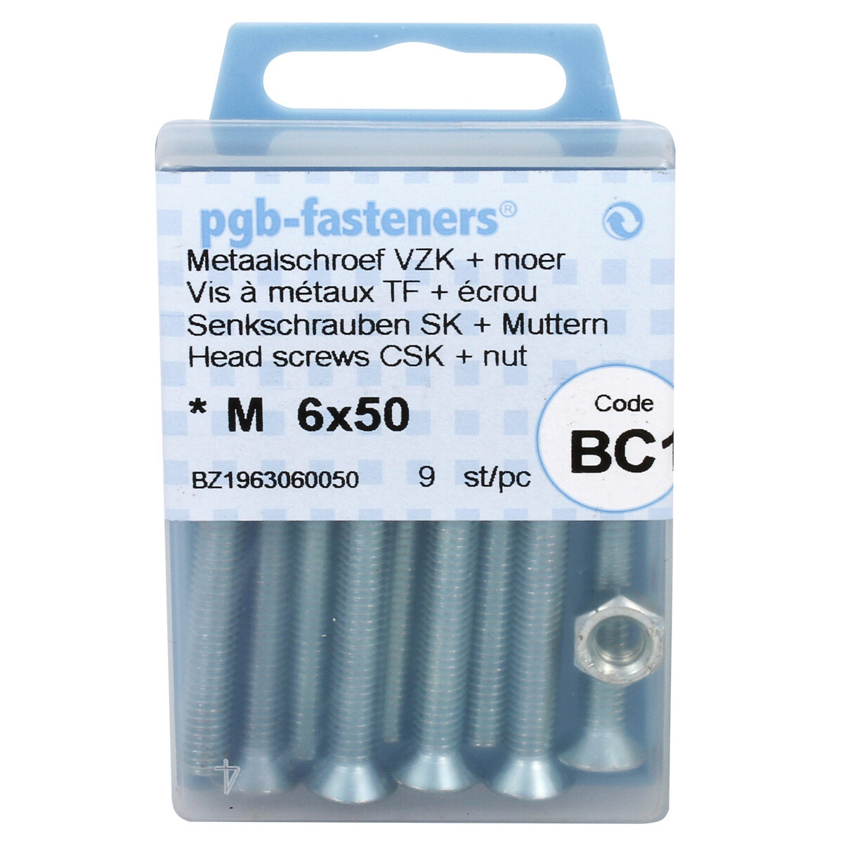 FÖRSÄNKT HUVUD SKRUV M6X50 9ST DIN965 + MUTTER M6
