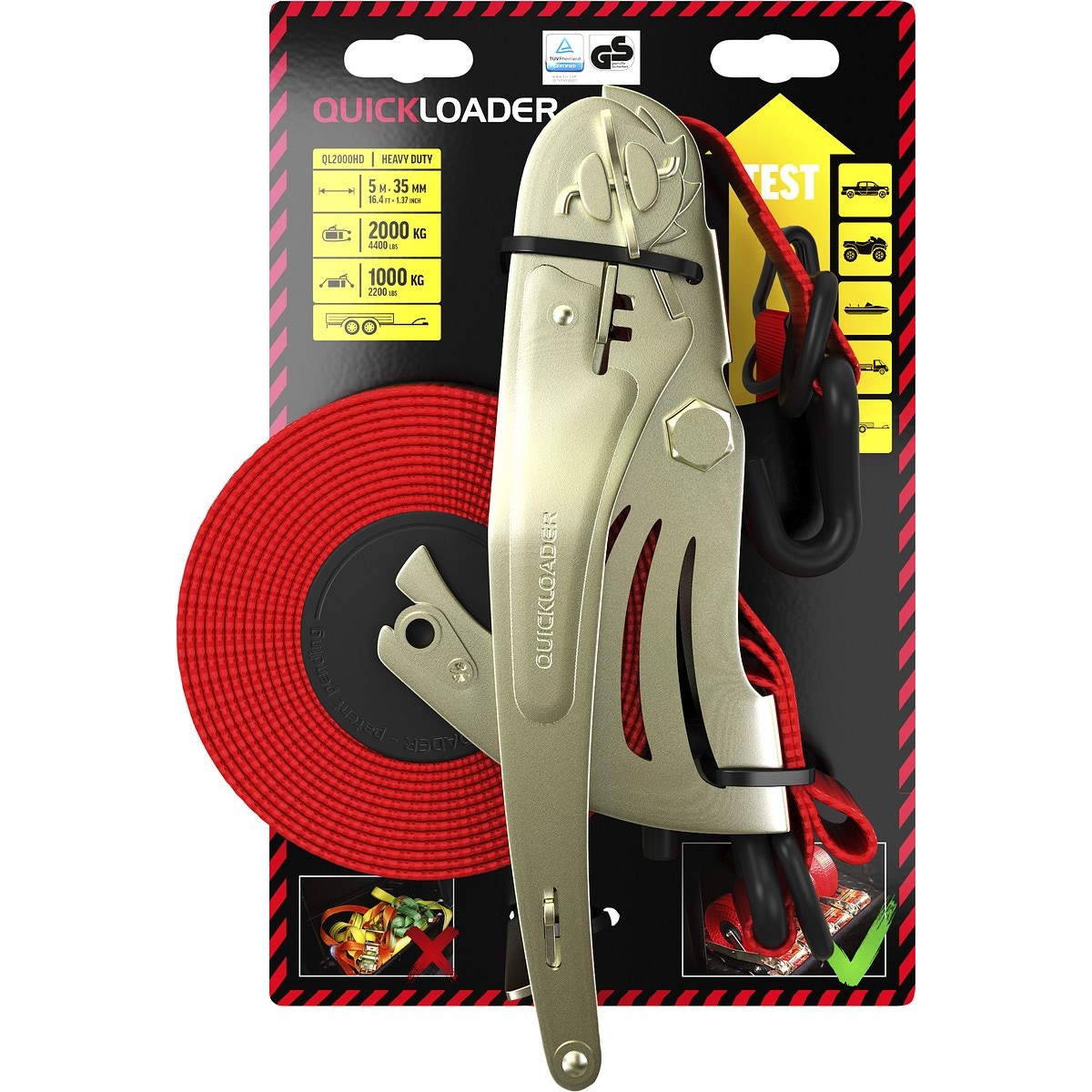 - QUICKLOADER® Retractable QL2000HD är förmodligen det bästa självupprullande spännbandet på marknaden