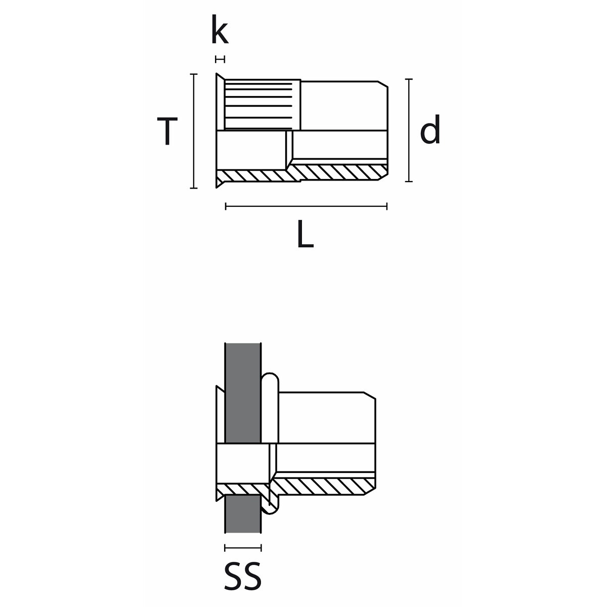 - huvud (T) Ø 8,0 mm