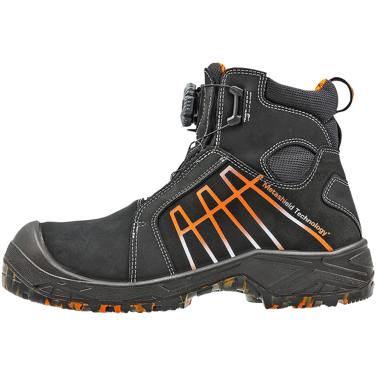 - Det integrerade fotbladsskyddet av Metashield dämpar upp till 90 % av de stötar som riktas mot fotbladet