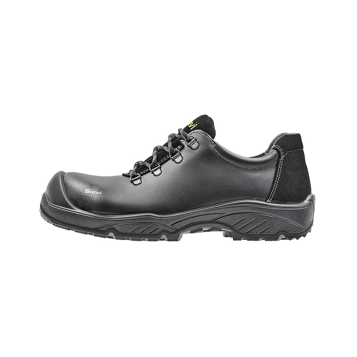 - Lågsko med snörning, tillverkad av hållbart PU-belagt skinn, med tåskydd tillverkat av komposit och spiktrampskydd av stål