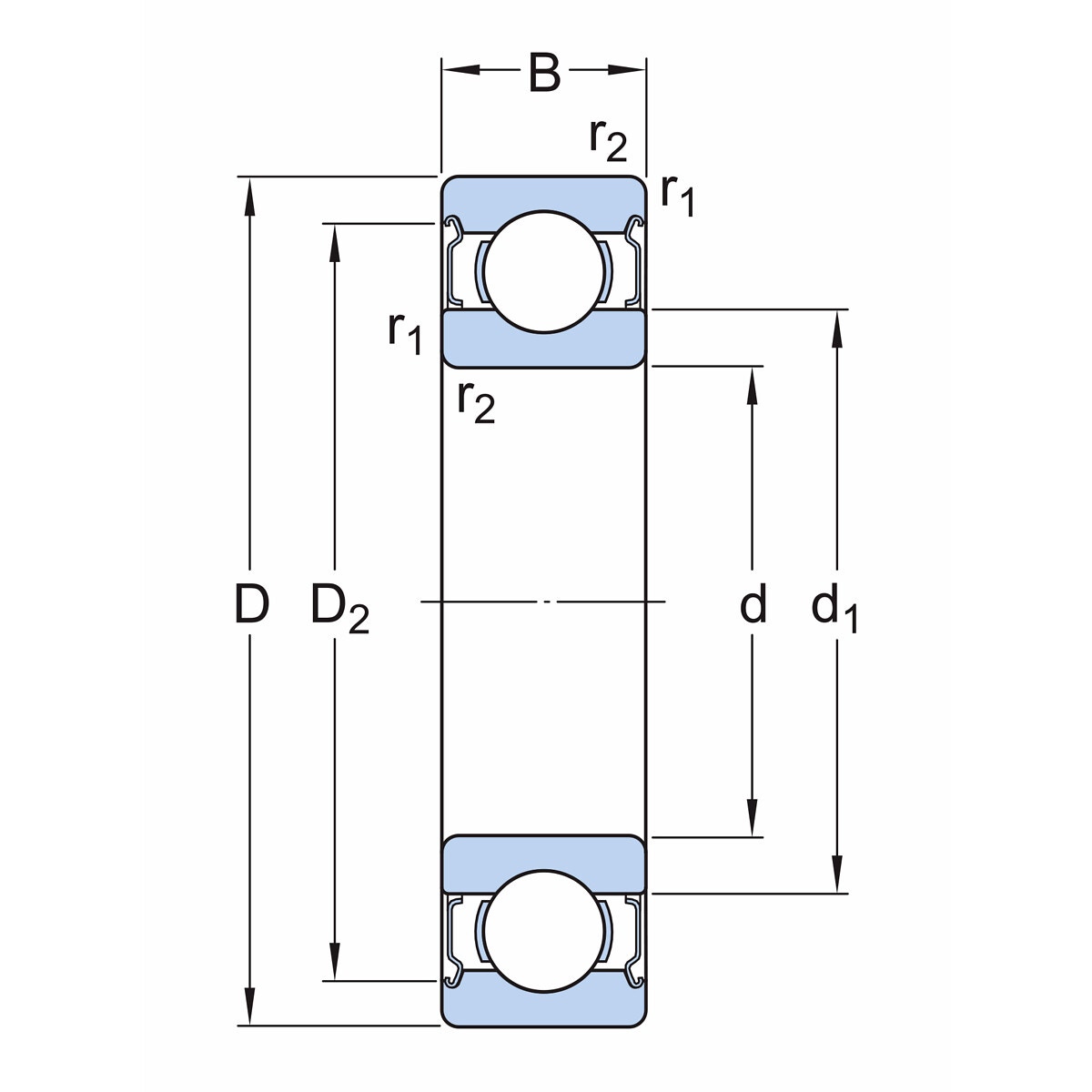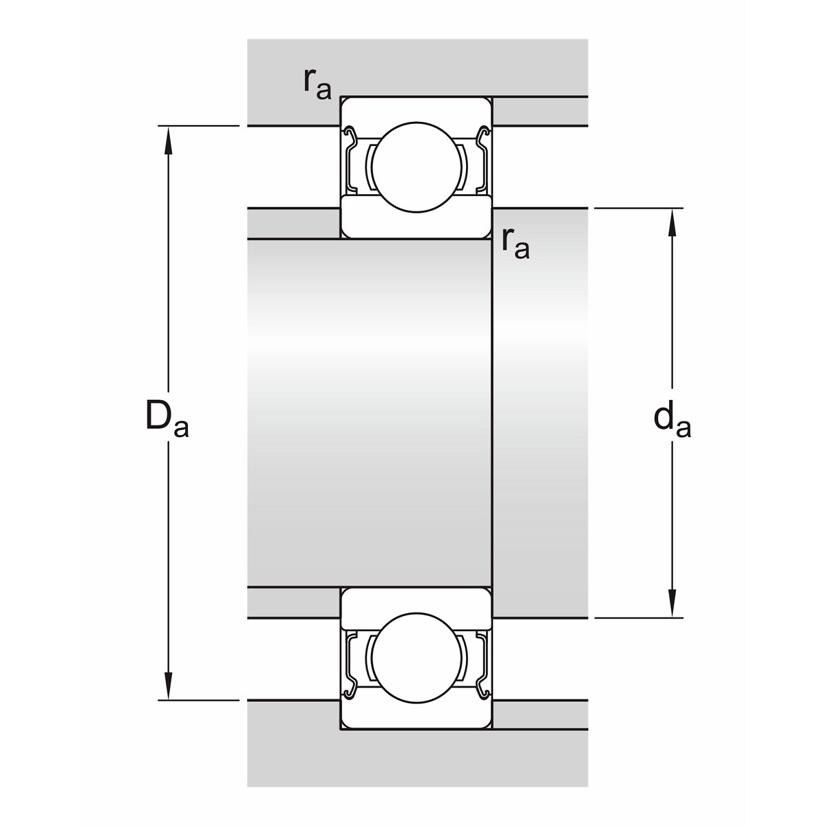 - diameter för släppningen av ytterringens skuldra (D2) 11,2 mm