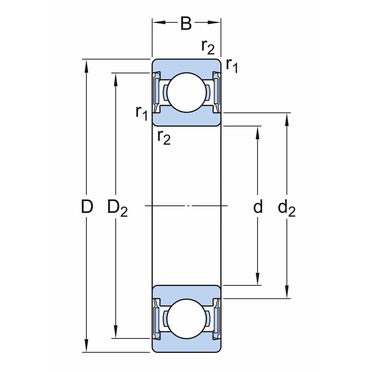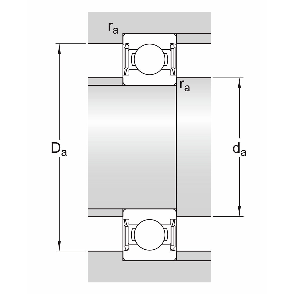 - diametern för släppningen av ytterringens skuldra (D2) 21,4 mm
