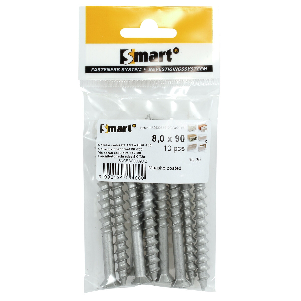 LÄTTBETONGSKRUV 8X90MM (30MM) 10ST TX30