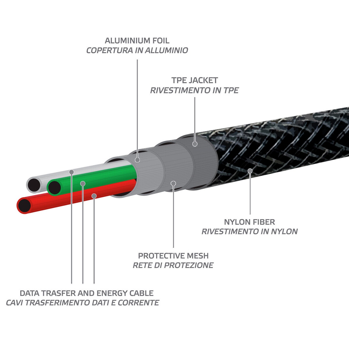 - en hållbar nylonbelagd kabel