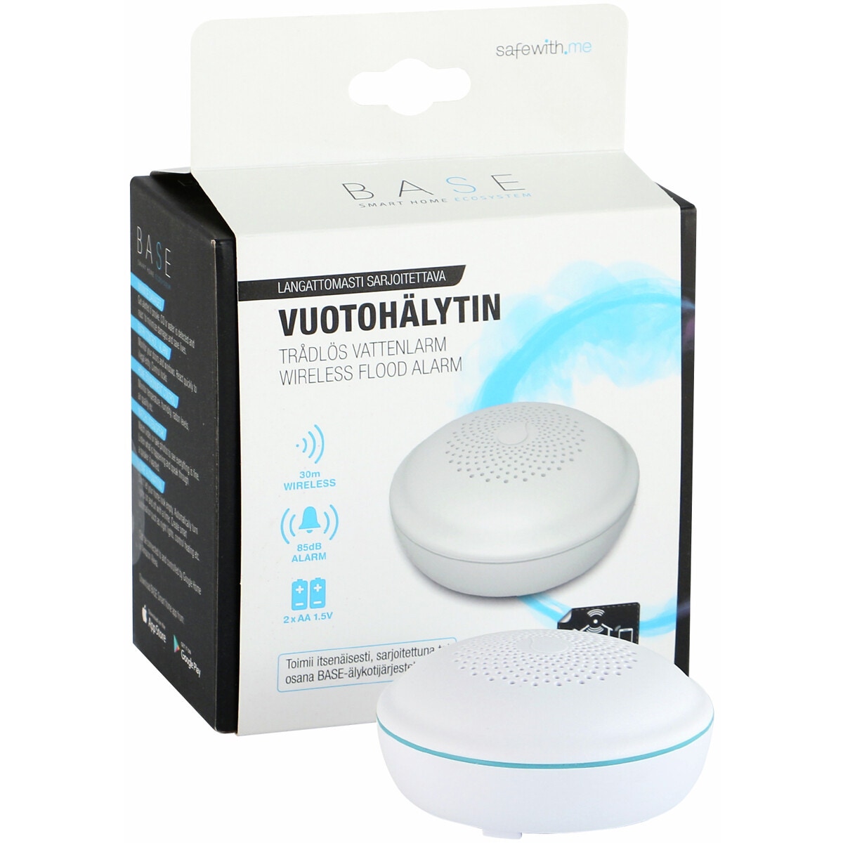 - som en del av BASE Smart Home System: med mobilapplikationen får du larm till din telefon