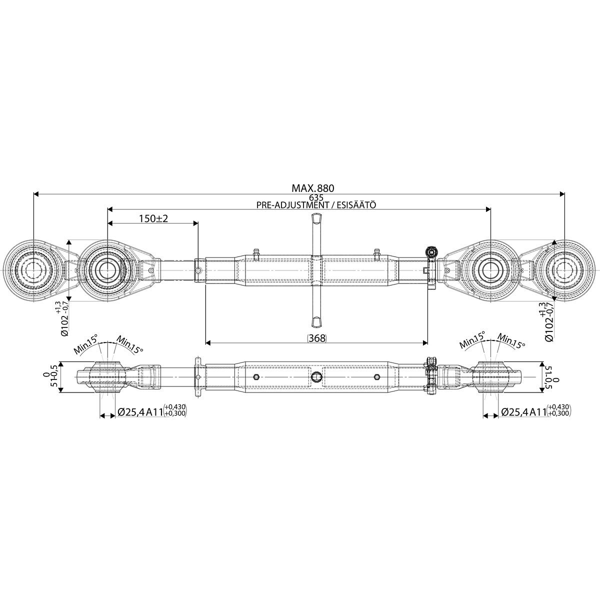 TRYCKSTÄNGER 2-2 643-880 M33X3 HD VALTRA