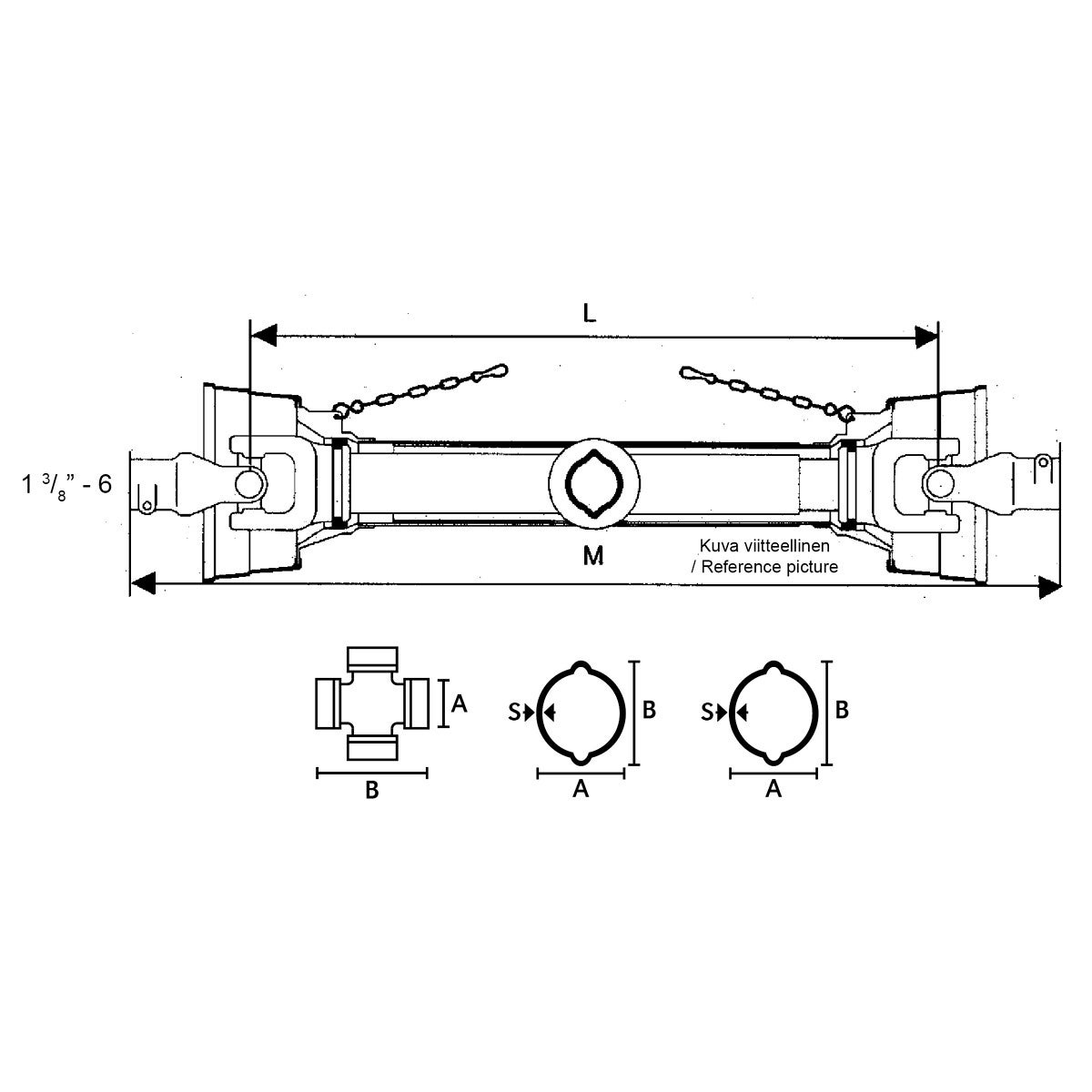 - ytterrör: A 41 mm, B 48 mm, S 3 mm