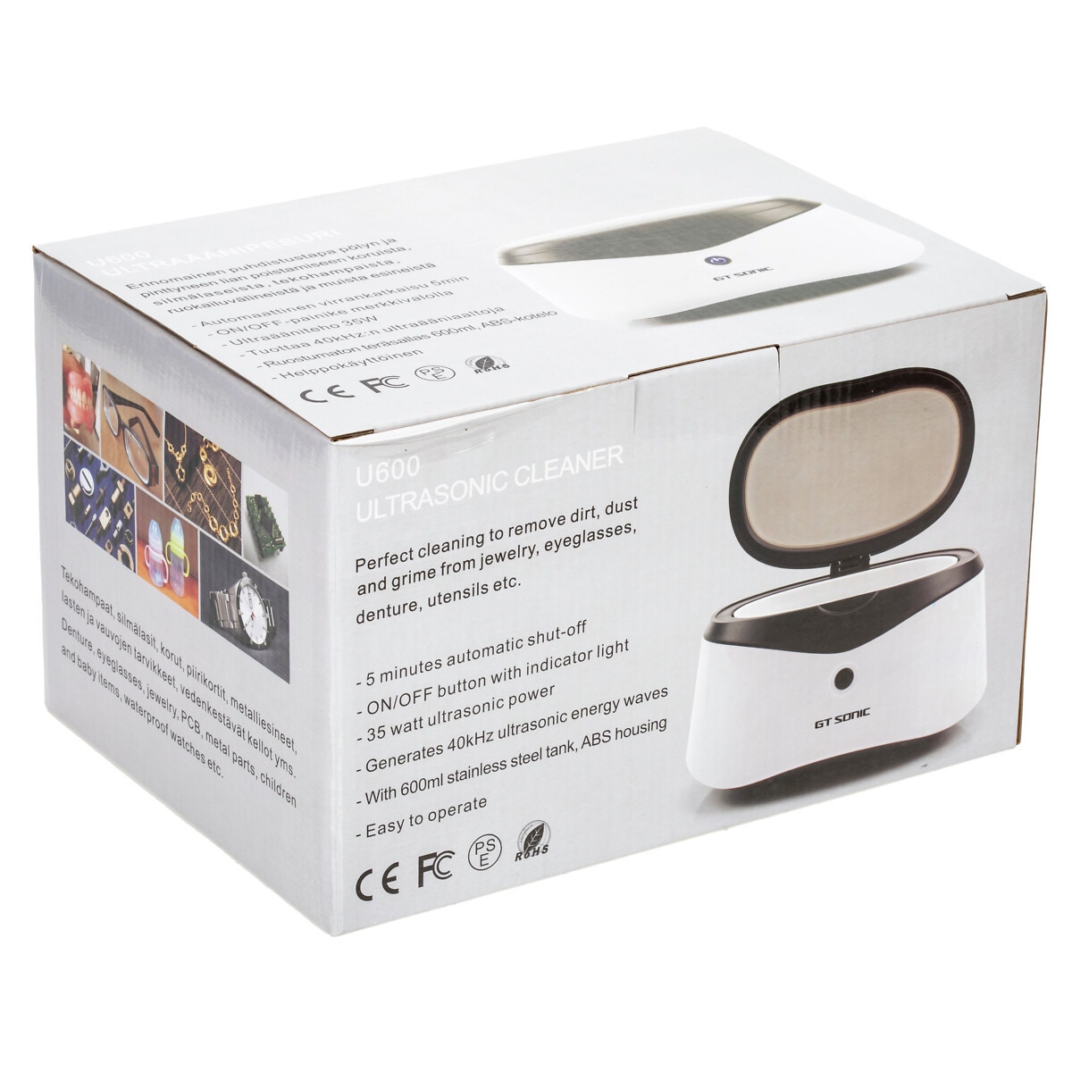 - Föremålet som rengörs kan vara gummi, glas, metall, plast, keramik och också elektronik.