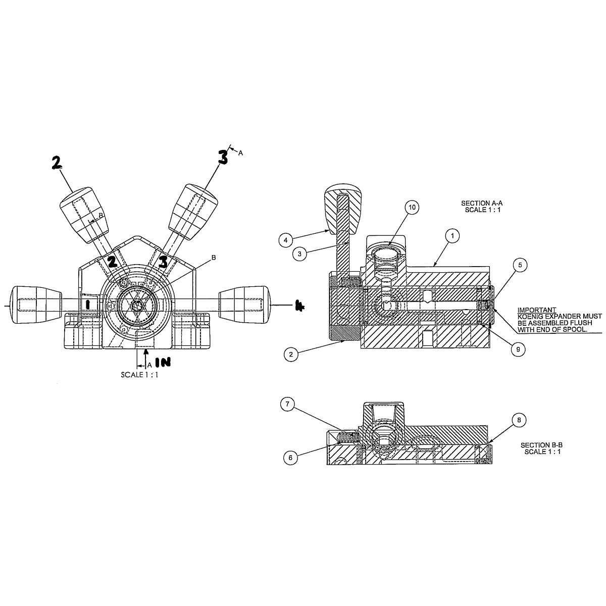 - när väljaren är I läget 3 är flödet i port 3