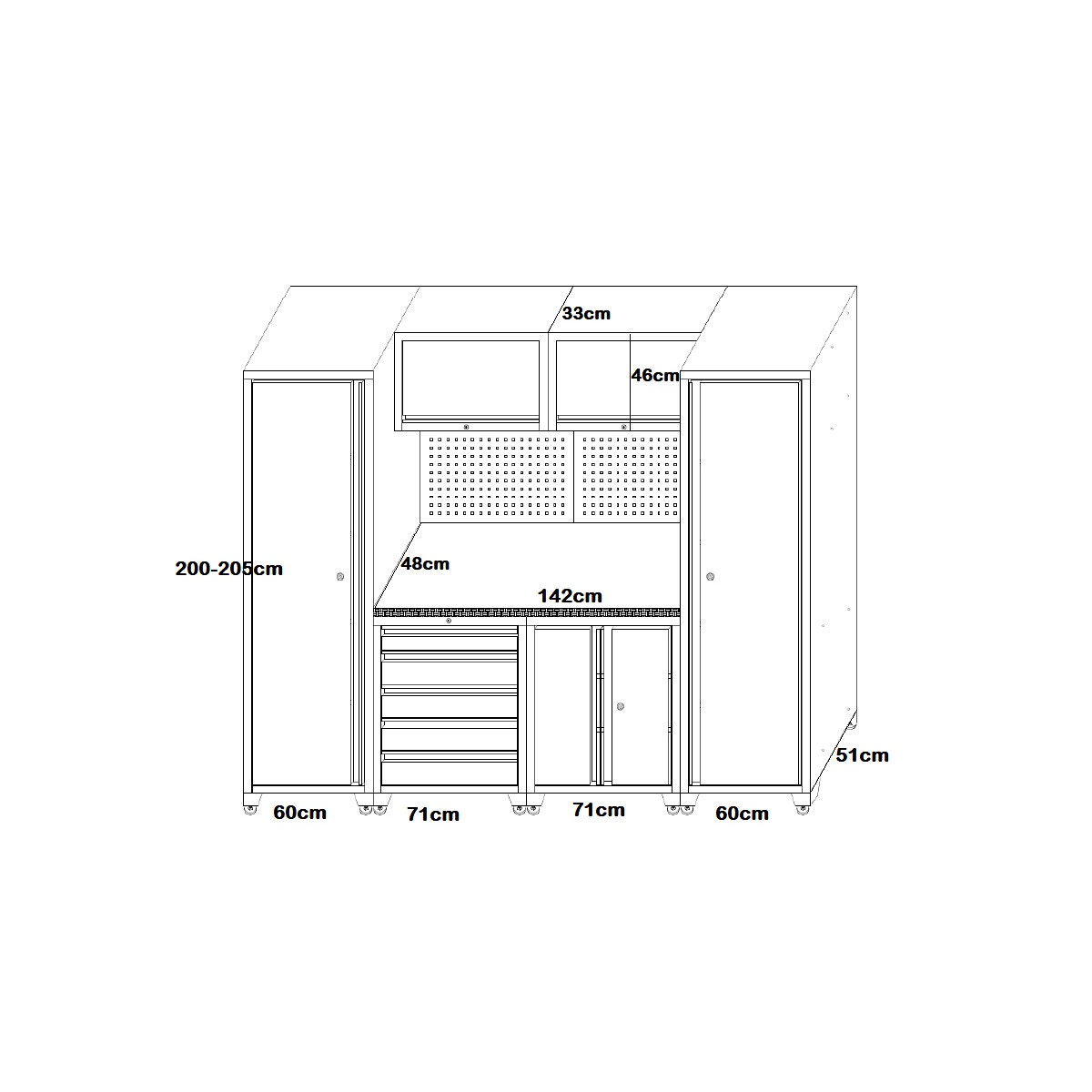 ARBETSSTATION 2642X507X1956MM 9 DELAR
