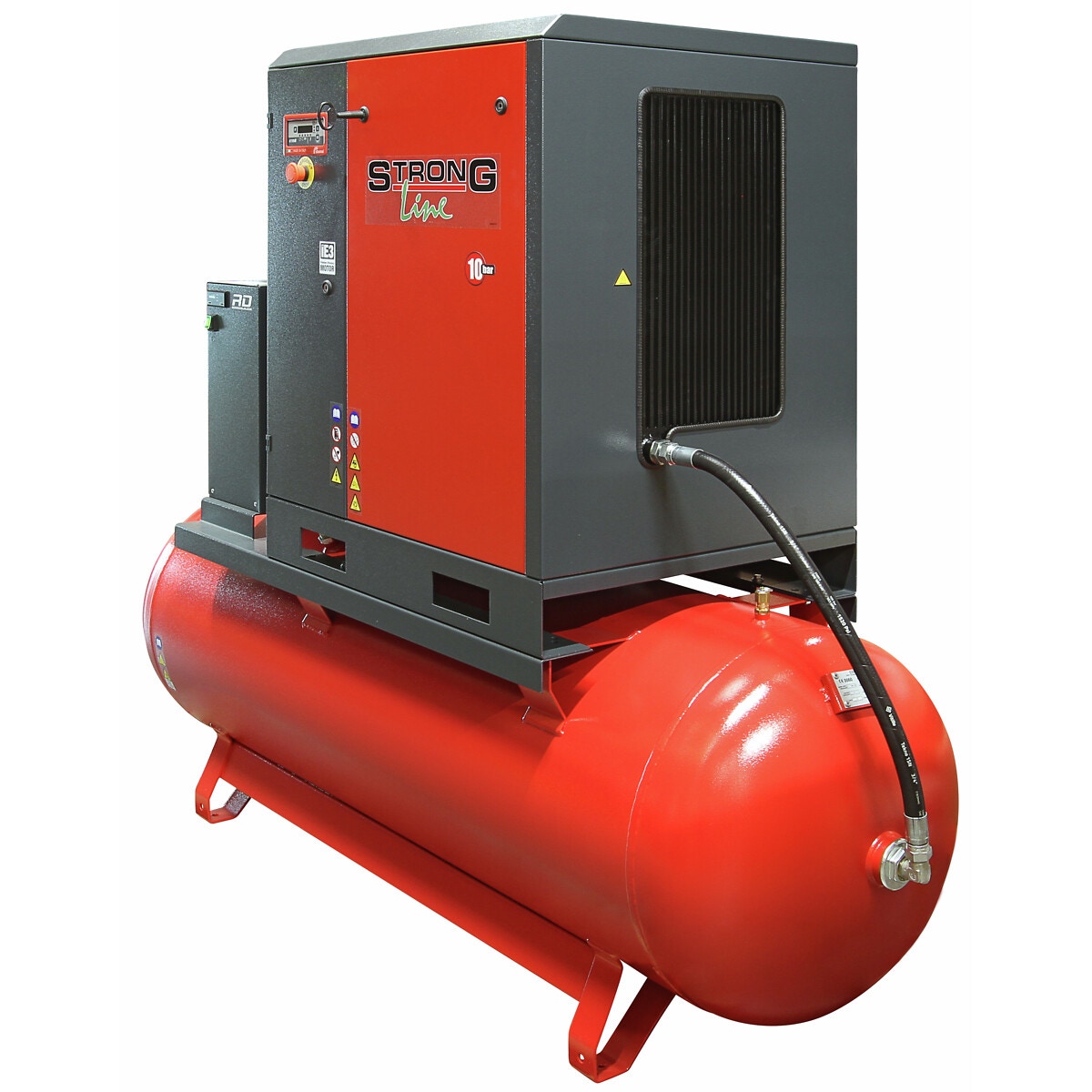 - väldigt kvalitativ skruvkompressor för proffs och andra krävande användningsområden, mycket effektiv på grund av trycket på 10 bar och passar för tryckluftslinjebruk
